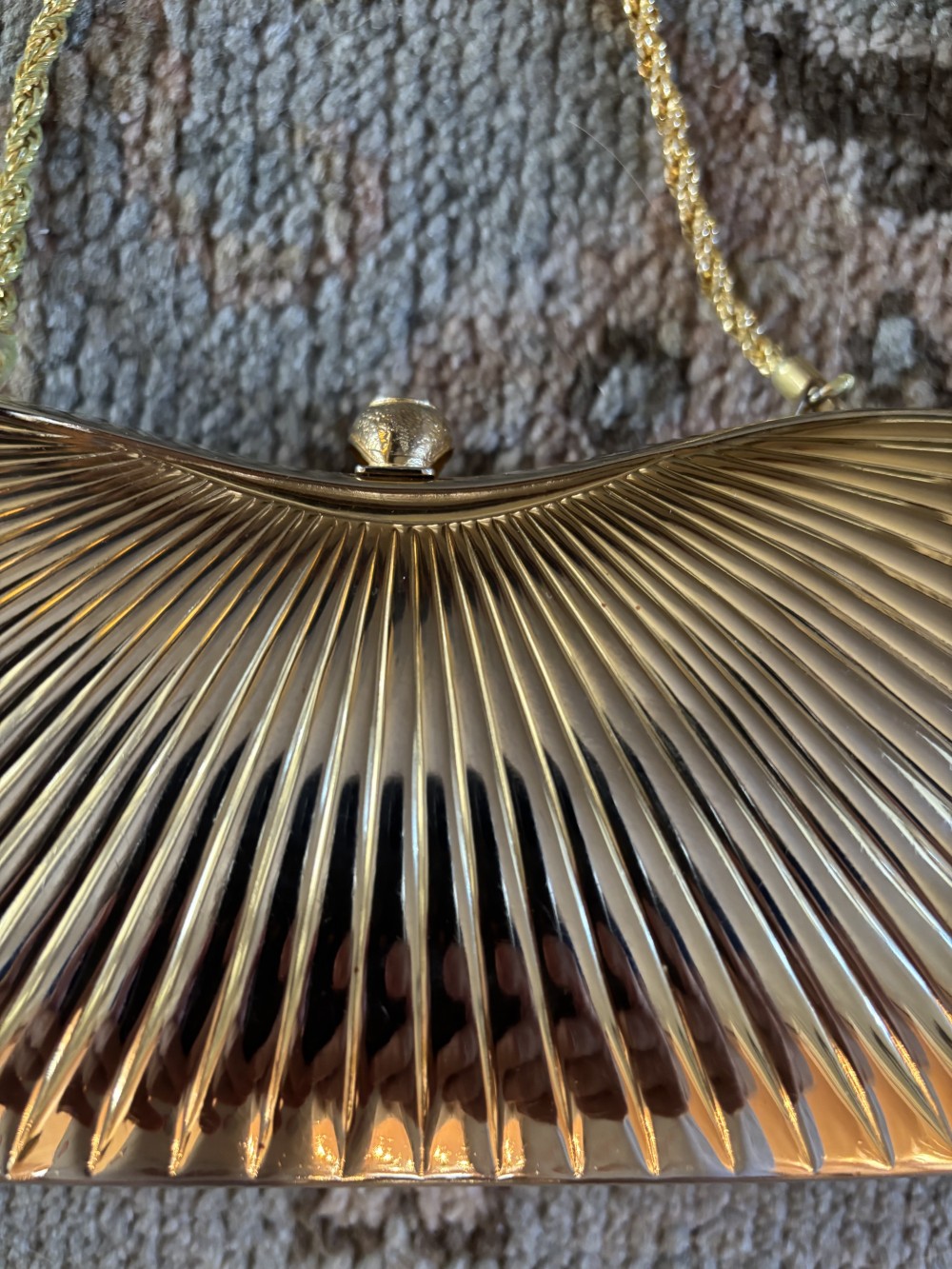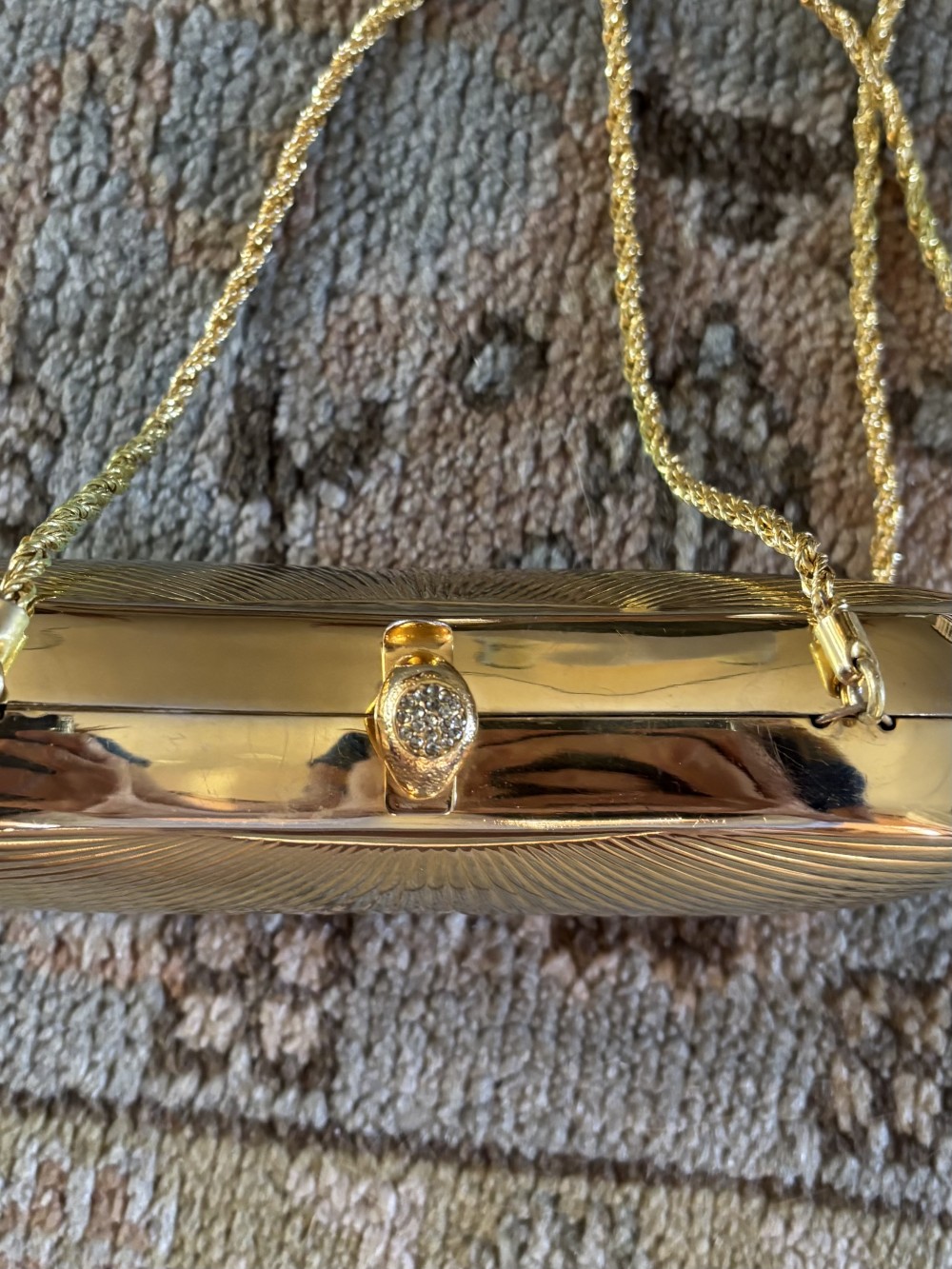 How Glamorous!! Vintage Golden Clutch w/Rhinestone details-Italian! Great for Holiday, Weddings or just Glamming Out!