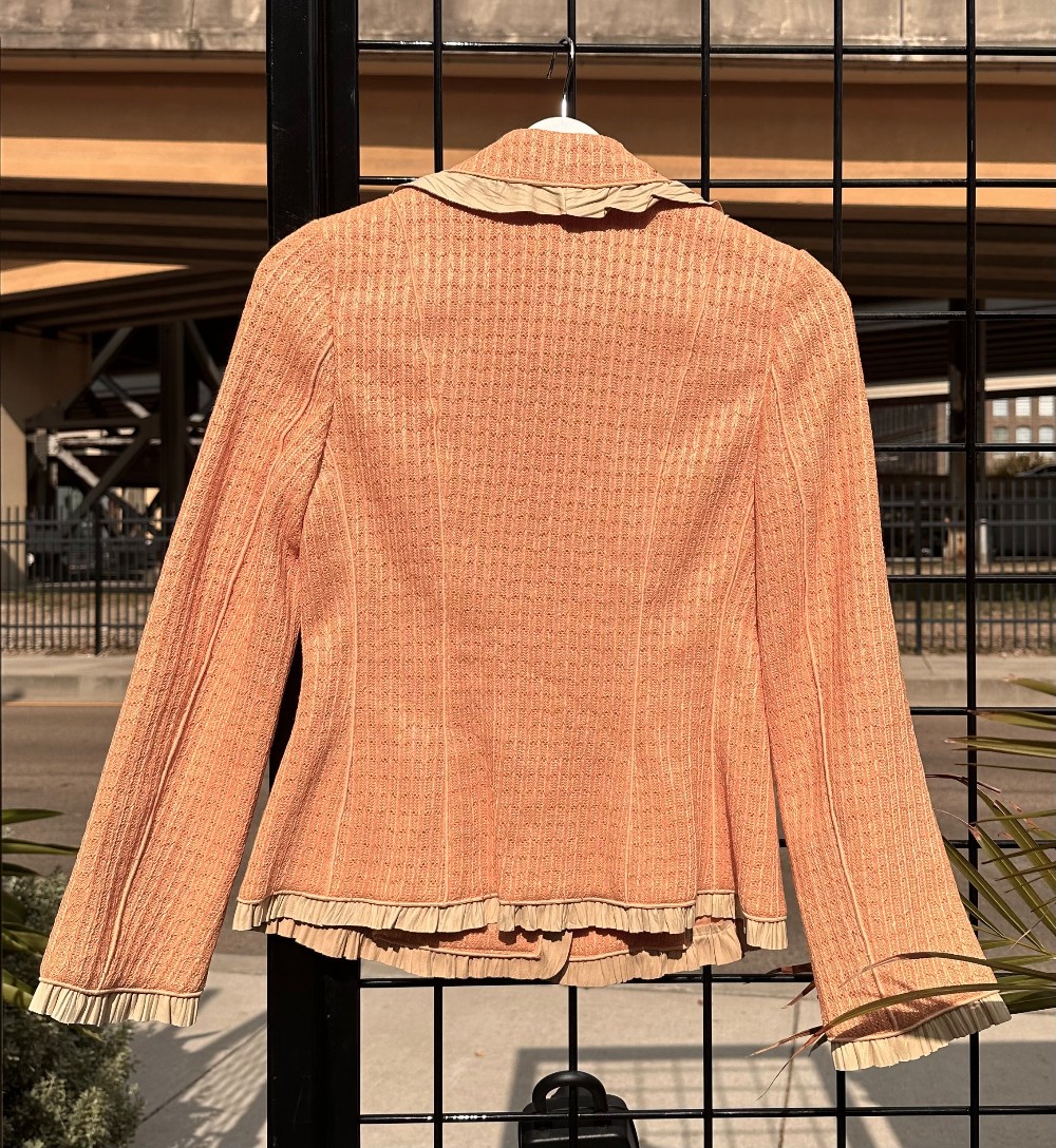 Light Peach woven material with dove grey lambskin trim