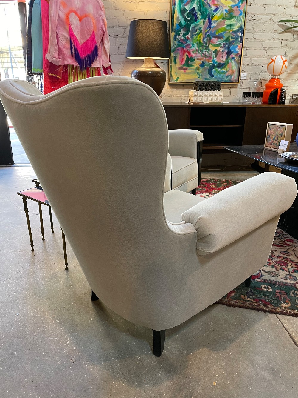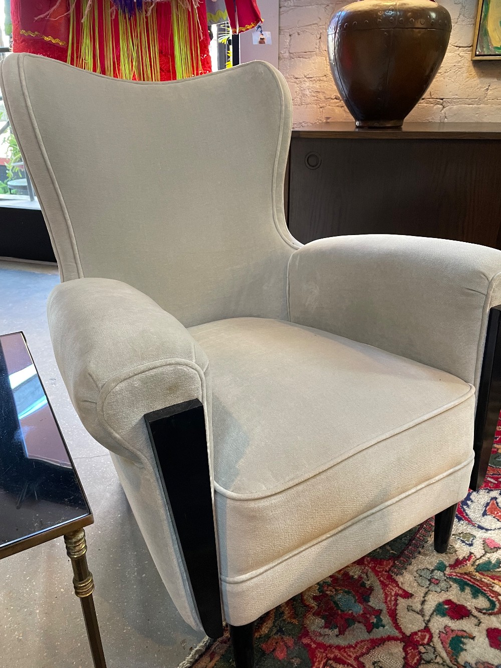 Ebonized Wooden Deco Details. Softly curvy wings, these chairs add instant sophistication!